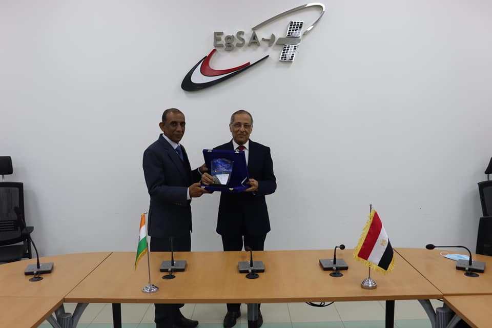 At the end of the visit, the CEO of the Egyptian Space Agency gifted the shield of the Agency to the Indian Ambassador.