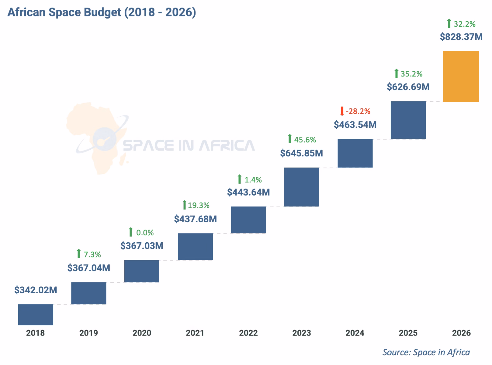 African Governments Budget USD 828.37 Million for Space Programmes in 2026, Space in Africa Report Shows