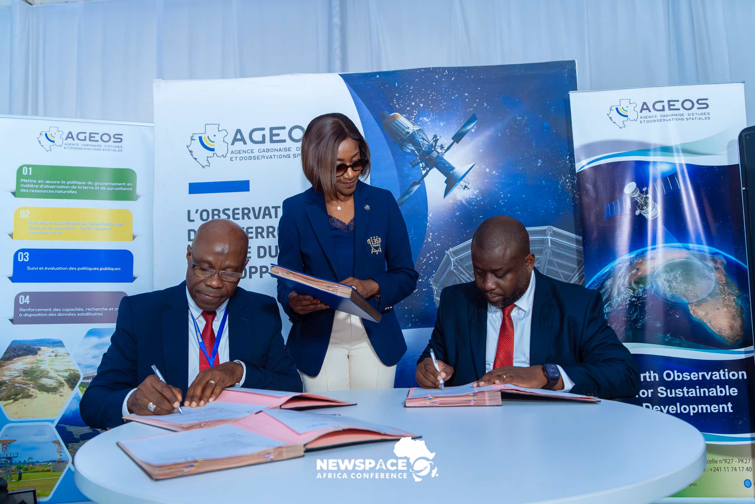 Gabonese Agency for Space Studies and Observations engages in discussions with international partners during NewSpace Africa Conference 2026. Source: Space in Africa